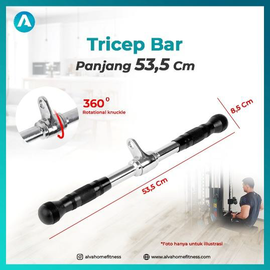 Aksesoris bawaan Optimove M-1000 untuk latihan Tricep. Memiliki poros di bagian tengah yang dapat berputar dan finish chrome memberikan kesan premium.